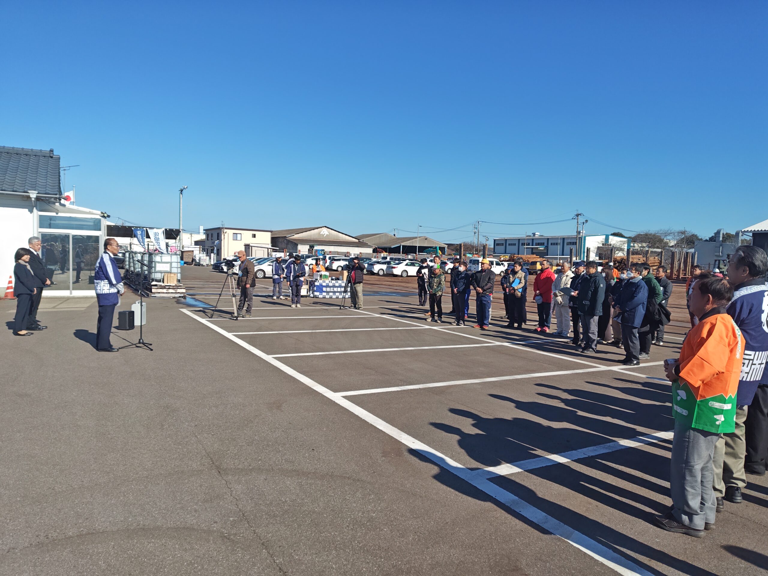1月9日、佐伯共販所にて初市が開催されました。 雲ひとつない晴天に恵まれ、気温も心地よく、新年のスタートにふさわしい一日となりました。
