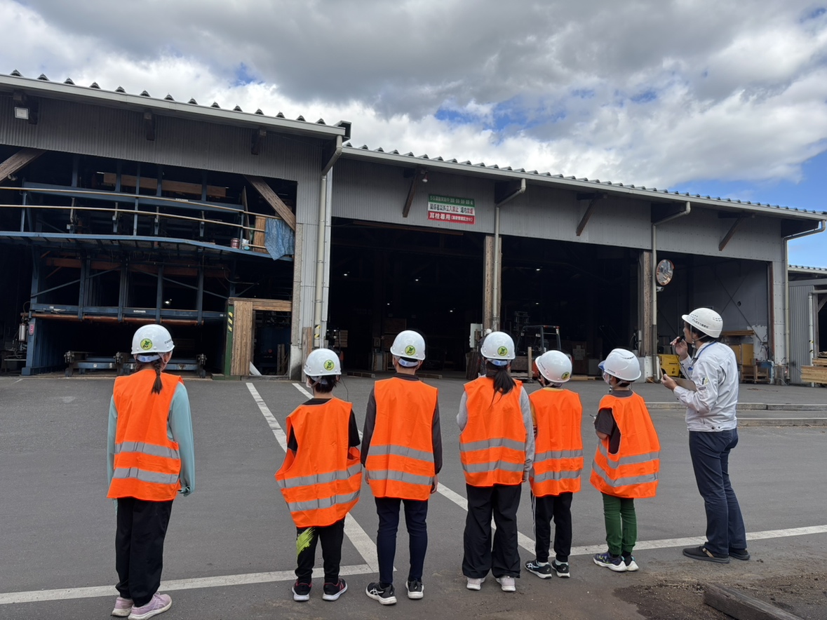 ミニブログ 工場見学 2025.10.29 昨日は宇目緑豊小学校の5年生の皆様が森の勉強会と製材工場の見学に来ました。 積極的にたくさんの質問も飛び出し、とても勉強熱心でした。 工場見学ではボイラーの窯の中をみて驚いたり、機械で製材されていく様子を真剣に見ていました。 IMG_2954