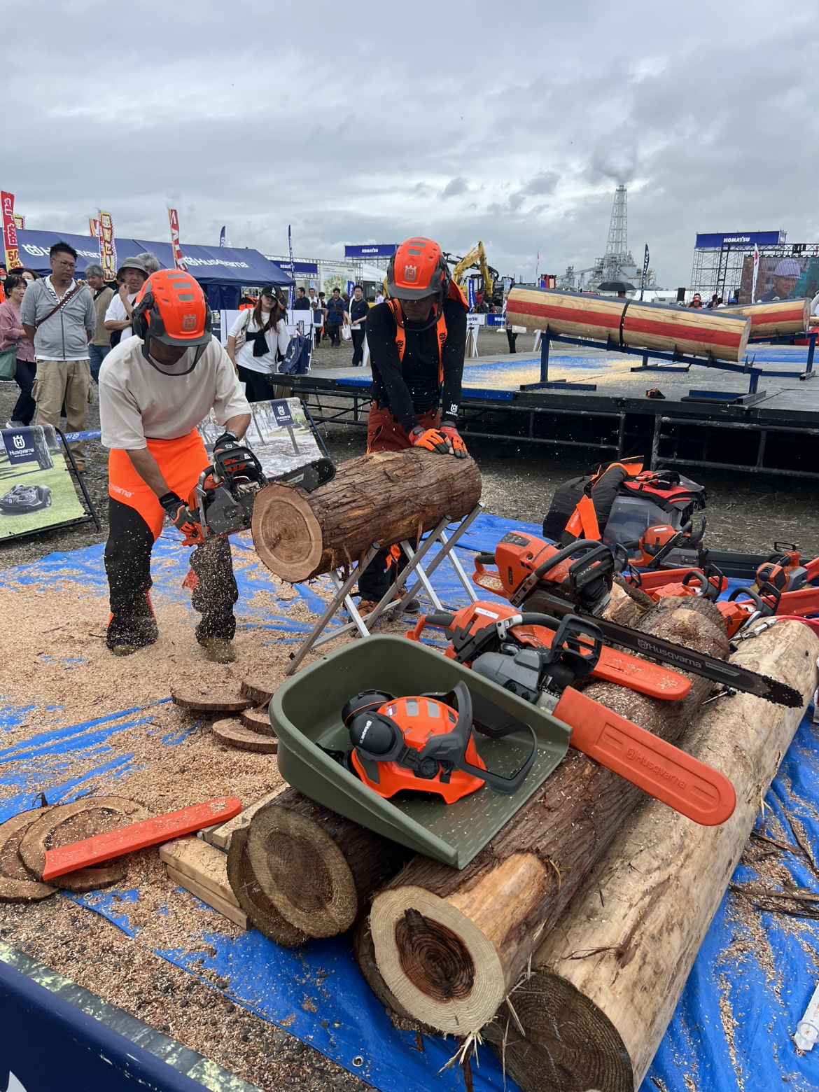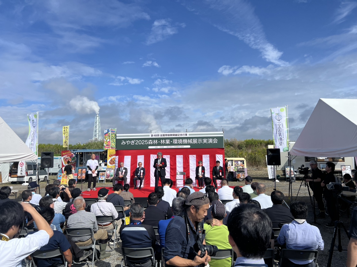 ミニブログ 林業機械展 2025.10.09 10月5日に宮城県で開催された林業機械展に当組合から2名伺いました。 今回は過去最大規模の展示で敷地も広く重機やトラックなど多数の出展がありました。 リモコンで動かせる重機なども出ており、安全対策に力を入れている企業が多かった印象とのことです。